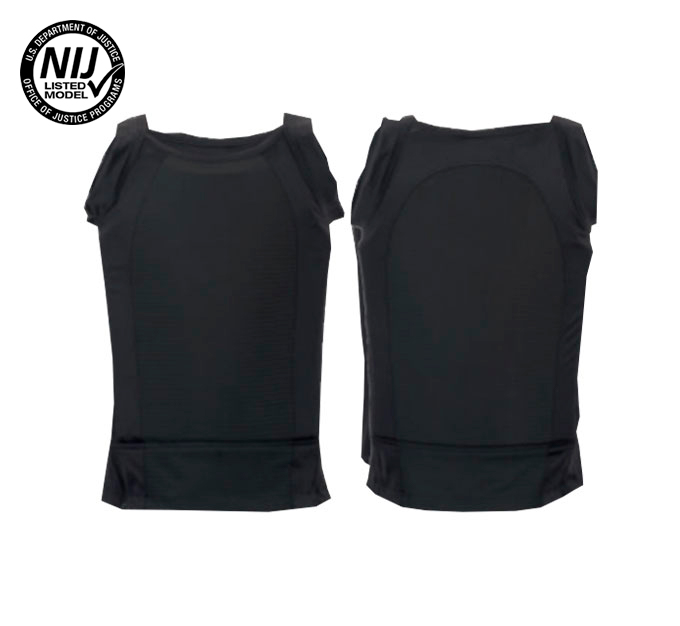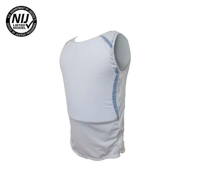 Camiseta interna nivel III-A de uso totalmente discreto protege contra armas cortas. Protección en frente y espalda certificada por la NIJ-STD-0101.06